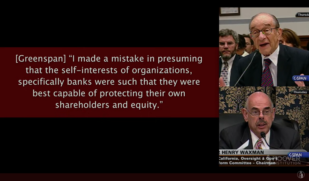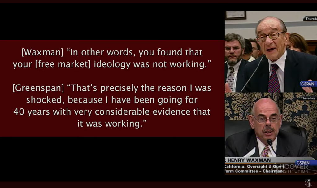这话出自艾伦·格林斯潘之口,他的职业生涯始于安·兰德(Ayn Rand)的追随者,并且是自由市场的坚定信徒,在20世纪或21世纪的美国,你很难遇到比他更坚定的人。